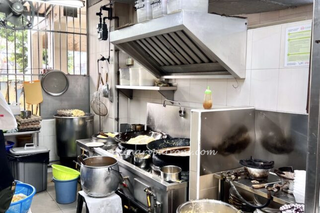 Occupying a small stall in a coffeeshop at Block 92 Toa Payoh Lorong 4, Kim Keat Hokkien Mee is a smaller operation than we expected. But we soon found out that from this modest space, the couple running the stall was able to churn out a large volume of HKM consistently. It is a very efficient operation. The noodles are pre-fried in big batches in a large wok. The other big wok cooks the noodles to completion according to the orders received. A smaller stove is for heating up claypots.