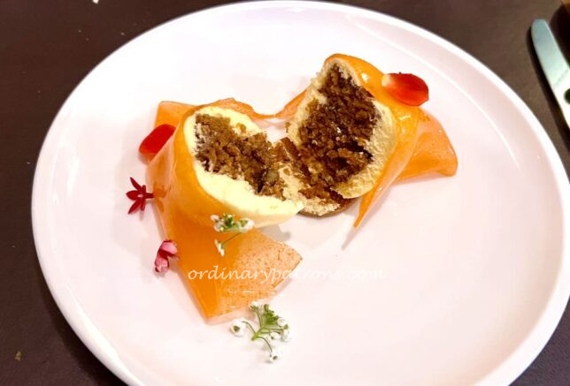Our choices for the last course of our lunch at this modern Orchard Road French restaurant were cheese selection and carrot gateau. We often pick cheese platters when they are available at set lunches as they offer a wide selection to choose from.