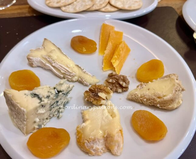 This is a picture of our cheese selection. I cannot remember what exactly the types of cheese were. They had different intensities and textures. Very enjoyable.
