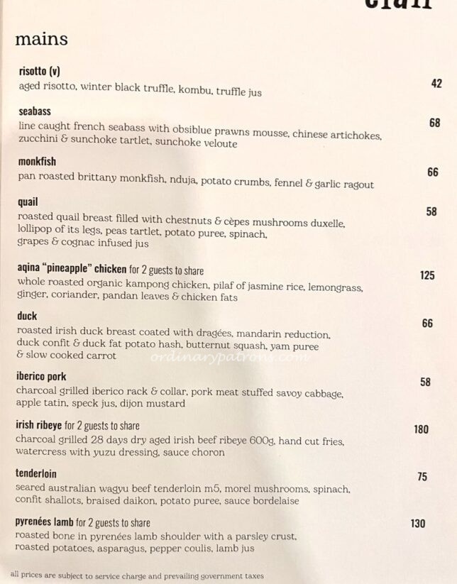 Here is a sample page from the Elan restaurant a la carte menu. We decided to go with a set lunch as the $70 price for a 3 course lunch plus coffee seemed like good value for money in a good Orchard Road French restaurant. We also picked an additional item from the regular menu.