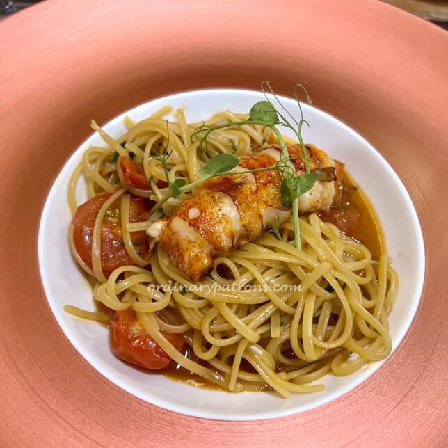 For main course we tried something different on this visit : lobster linguine. The presentation of this dish looked somewhat untidy, but the taste of both the pasta and lobster were good. The sauce provided was “crustacean sauce” which coated the linguine with a rich, oily seafood flavour.