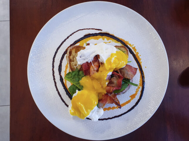 We ordered the Eggs Benedict with Crispy Bacon ($19.50) and French Toast ($18.90) for our brunch.