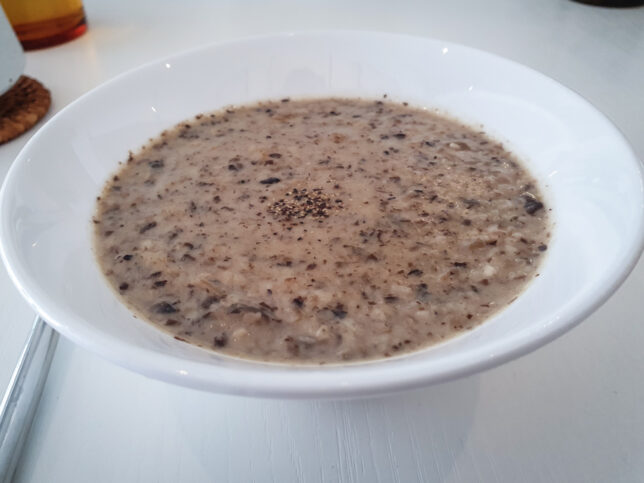 The portobello mushroom soup was a straightforward dish with earthy and robust flavours. Each spoonful offered a harmonious balance of pleasing flavours and aromas. Good comfort food.