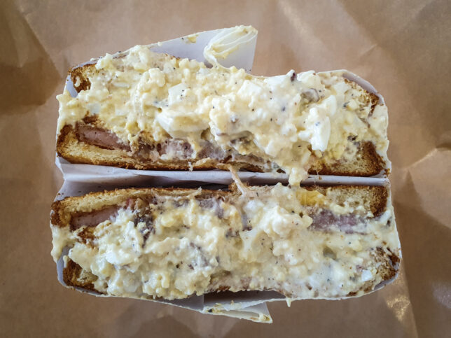 The sammies in Breakfast Grill arrived wrapped in plain brown paper. It was a charming touch that built anticipation. Sandwiches snugly encased in white waxed paper bags were revealed when the brown paper packages were unwrapped.