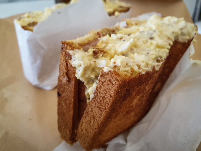 Unlike the Counter Brekkie, the Sunday Cals looked messy when we unwrapped it. However, looks alone would not tell the whole story. The sammie with creamy egg salad, crispy spam, bacon bits and gooey American cheddar plus house-made white onion sauce was very good. There was a heady mix of textures and flavours and each bite would excite the tastebuds and delight the palate.