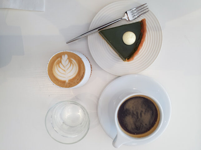 After the very good sammies, we found the matcha cream tart rather average. The tart crust was good but the green tea custard was ordinary. The coffee of Breakfast Grill was very good – both the black and white.