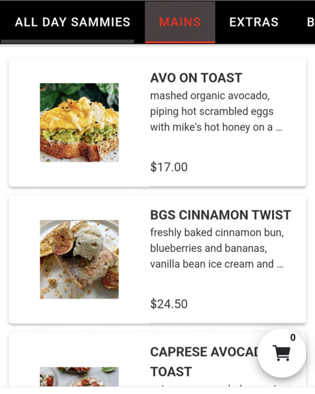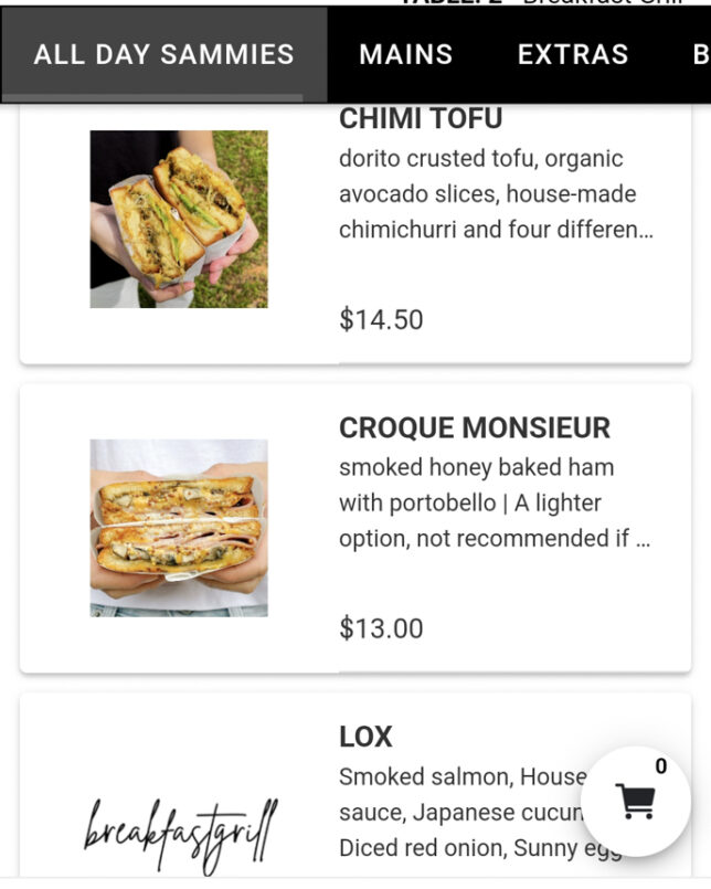 At Breakfast Grill, sammies take center stage. There are classic fillings like grilled cheeses and innovative combinations such as dorito crusted tofu and five spices deep fried chicken. The cafe also offers a selection of typical brunch dishes – including pasta, shakshouka and the it item, avocado on toast.