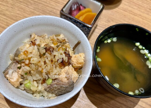 For our Kamameshi course, we picked the salmon and ikura kamameshi. The cooked rice with a topping of grilled fish and salmon roe was served in a heavy metal pot.