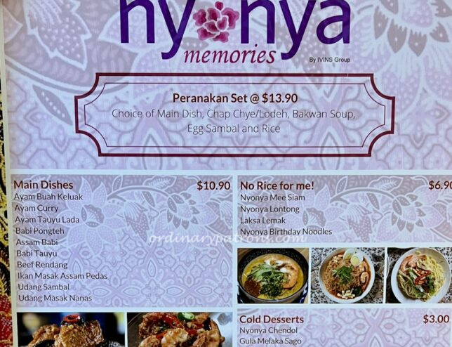 No special deal at Ivins, but their reliable, affordable Nyonya food is always a possible answer to the question – Where to Eat Today at Thomson? Here are pictures of their menu (June 2023).