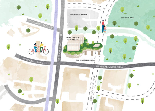 The Woodleigh Residences and The Woodleigh Mall is a mixed development project in the new Bidadari Estate, situated at the junction of Upper Serangoon Road and Upper Aljunied Road. The development houses 206,000 sq feet of retail space, 11 residential towers of 11-storey each, a 65,000 sq feet Community Club and a 24,000 sq feet Neighbourhood Police Centre.