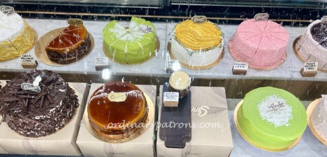 A generous spread of cakes and desserts will tempt you from the display cases. From more conventional cakes like Black Forest to more unusual ones such as Sinpopo Kueh Sarlat, this is one place where those with a sweet tooth will not be disappointed.