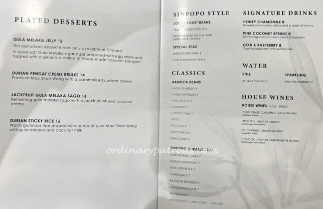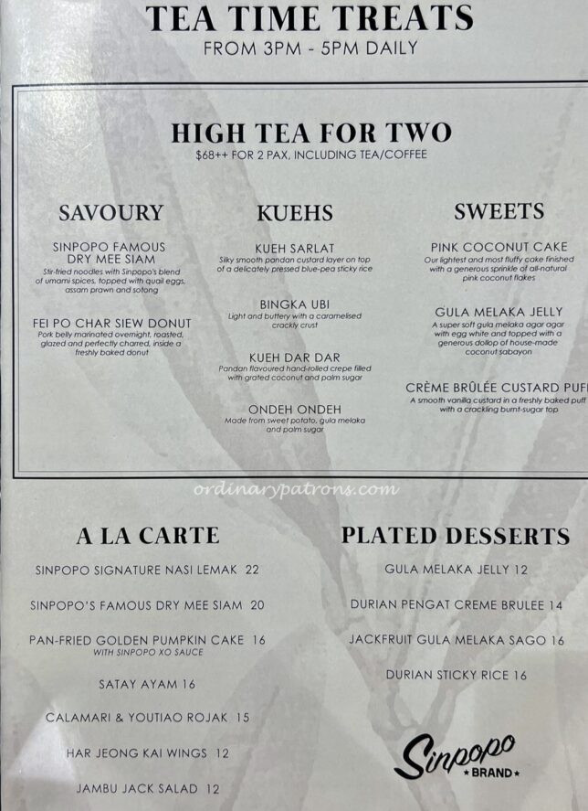 Here are pictures of some portions of the Sinpopo Tangs Menu when we were there for lunch recently in July 2023. According to their website, Sinpopo is managed by Awfully Chocolate : ” … we run a full-fledged Sinpopo Brand restaurant kitchen, where we respect the essence of not-to-be-messed-with local recipes but spruce them up to keep them relevant.”