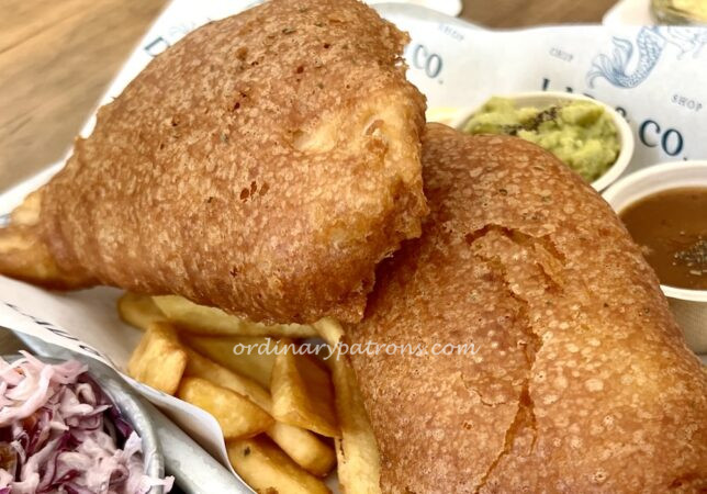 Lad & Co fish and chips restaurant is on the ground floor of the Tanglin Post Office building. It is in an outdoor patio space. Sheltered but no aircon. Yet business was bustling on a weekday lunch. Before eating a single chip, we were impressed that they could attract a small crowd to a rather secluded building to have lunch on a sunny day.