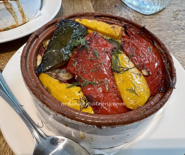 Two of the dishes were served in claypots. These types of Greek food in Singapore reminded us of local the char dishes. The oven baked vegetables ($19.90) had peppers cooked till soft, with dill and the fragrant olive oil providing great flavours. We would have liked it better if there were less potatoes which were buried under the top layer of of vegetables.