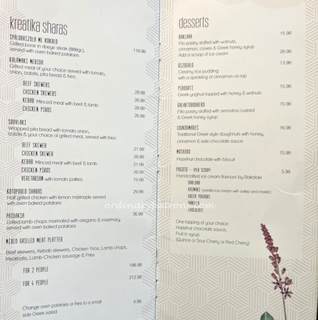 We are not very familiar with Greek cuisine but the menu certainly contains a wide variety of Greek food. Here are some pages of the menu.