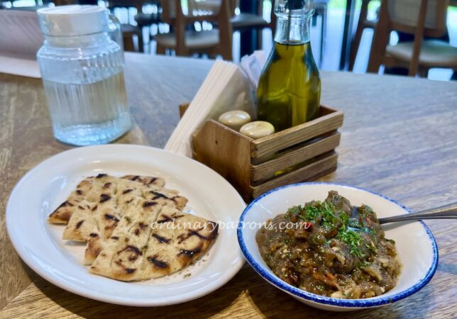 We had visited the Bakalaki Greek restaurant before for a quick lunch. You can see the dishes we tried that day as well as more pictures of the restaurant interior on our post. We had been curious about the other food on the menu and returned recently to try more types of Greek food in Singapore. This time we were seated in a different area of the restaurant. The area near the entrance has a different character – bright and modern whereas the internal area (where we sat at the earlier visit) was cosy and more traditional.