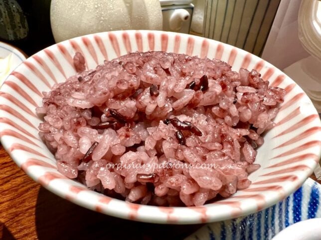 There is also a choice of white or brown rice. We selected one of each for comparison. Brown rice sounds and looks like a more healthy choice. But we prefer the Japanese white rice which has a nice fragrance and a fluffy yet chewy texture.