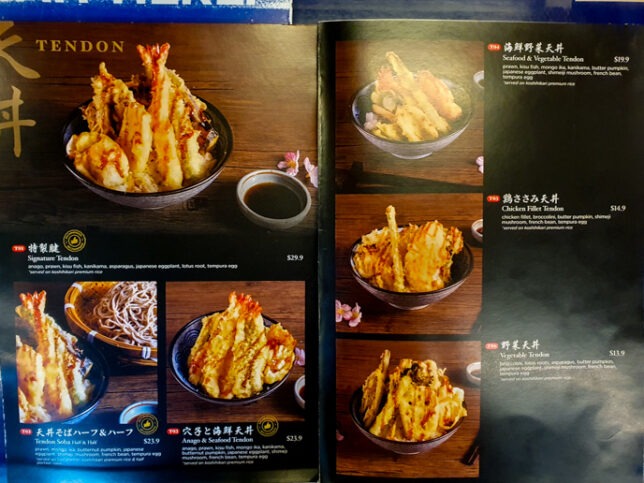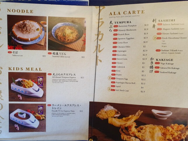 Menu of Tempura Bar