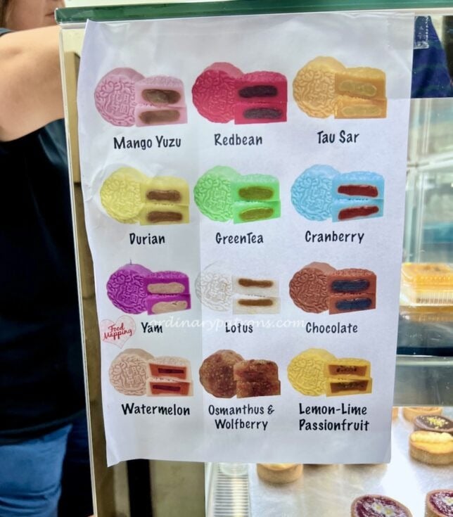 Here is a list of the types of agar agar mooncakes available from Food Mapping. A few flavours such as durian were sold out at the time of our visit. They also make other types of agar agar, some of which were seen in the display case. The Flower Dome agar agar with its multi-layered construction looks amazing.