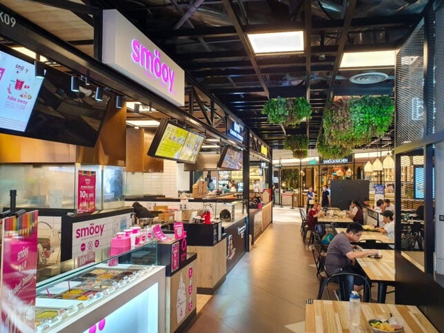 The stalls there include ้ฟ็้ ็ A Gan Guo Kui, Boost Juice, Churros Republic, Stuff’d, Potato Corner, SMรOY Yogurt, Wayang and Wok Hei.