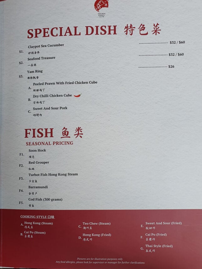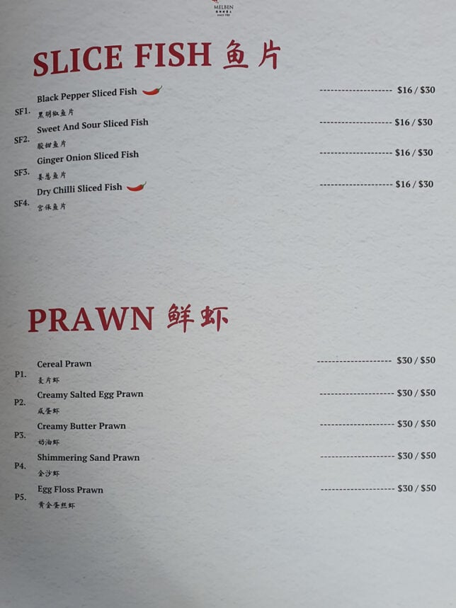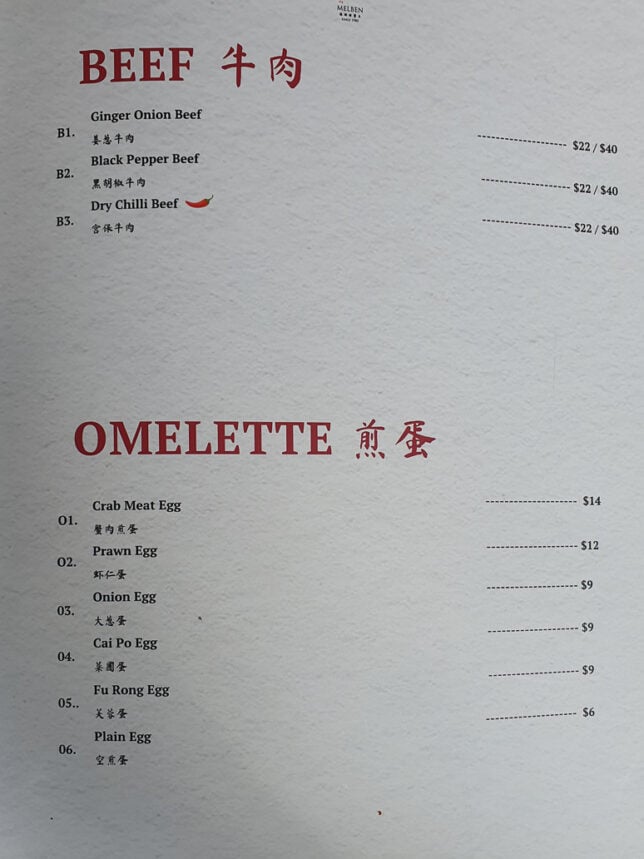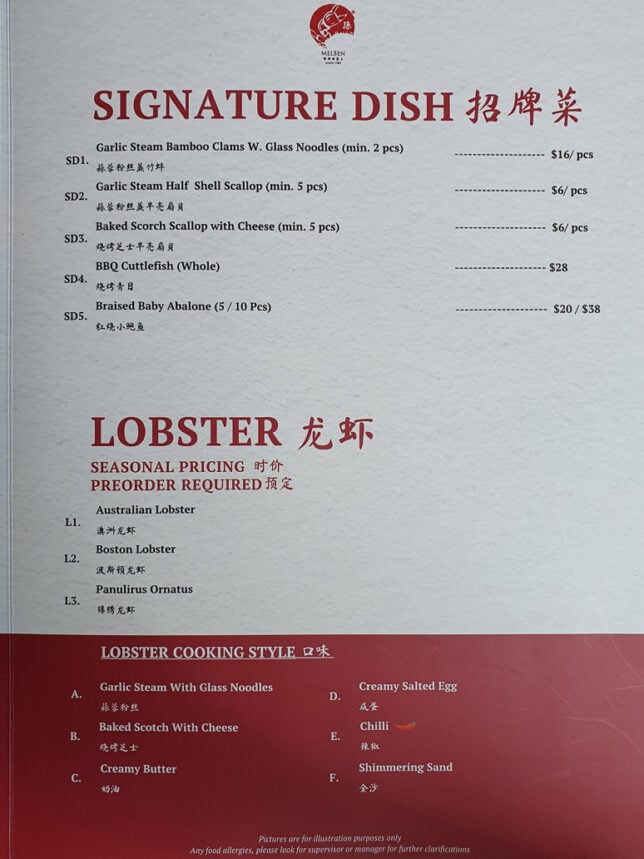 At Sprouts Food Place, Melben Seafood has an extensive menu which includes lobsters, crabs and fish as well zhi char dishes like Ginger Onion Beef, Fu Rong Egg, Prawn Roll and Three Egg Spinach. Various one dish meals are also available