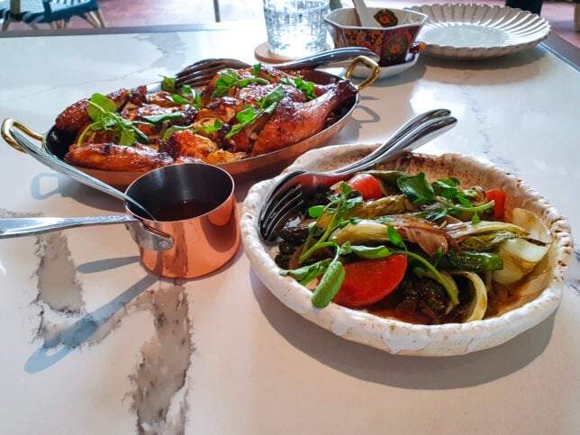 We thought we would be getting a few small pieces of chicken in a large plate with some fancy garnishing and lots of white space. Instead we got a whole chicken that could be easily shared by four persons. Add a bit of carbohydrates and all four would have a good complete meal.