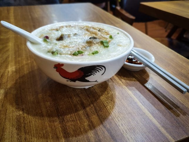 Each bowl of porridge was served piping hot. The porridge, prepared with just rice and water and no additional broth base or seasoning, was light and smooth. It was neither too thick nor too watery. We were not discerning enough to be able to tell if the porridge was cooked over charcoal fire or otherwise.