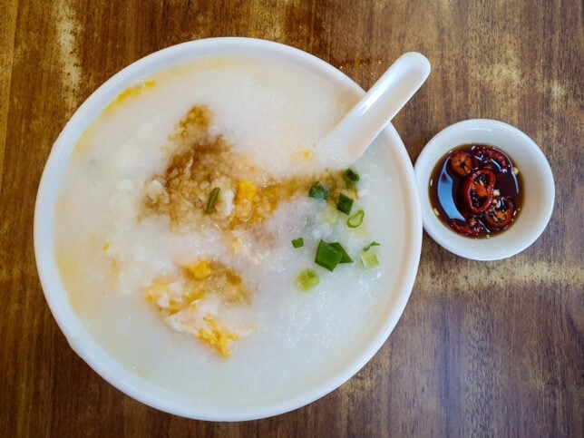 Tiong Bahru is a place for cheap and good food. Enjoying a bowl of comforting porridge is one of the simple delights associated with this popular foodie neighbourhood. The famous Ah Chiang Porridge, operating in an old school coffeeshop with tables out by the roadside under an awning, has been serving affordable bowls of porridge bliss for years