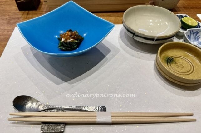 Using Google Map in different ways, it always led us to the same place. “You have arrived”. But we were standing at a narrow lane somewhere near Nakameguro Station with no restaurant in sight. The restaurant slowly revealed itself at its opening time of 12 noon. A small van pulled up in front of this small old house and started unloading seafood supplies. Then a small door opened and someone started bringing in the white styrofoam boxes. Moments later we were invited into the restaurant.