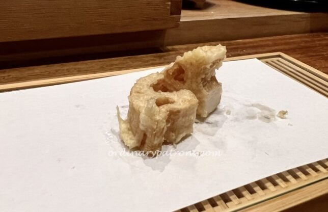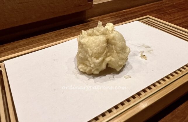 Prawn tempura is always a highlight at tempura restaurants and this was also the case here. 2 pieces were serve, each deliberately cooked to a different degree of “doneness” for contrast.