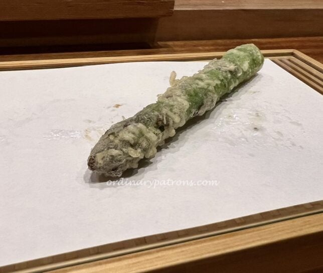The sashimi was made with aged tuna which had a deeper taste than usual tuna sashimi. An interesting and tasty start to our one Michelin star tempura meal in Tokyo.