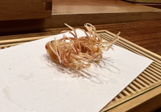 At the time of our visit there were two lunch options: a ¥15,180 (10 piece tempura) course and a ¥25,300 course. We opted for the more affordable course. By the way, an announcement on the Tempura Miyashiror website indicates that prices will increase in December 2023.