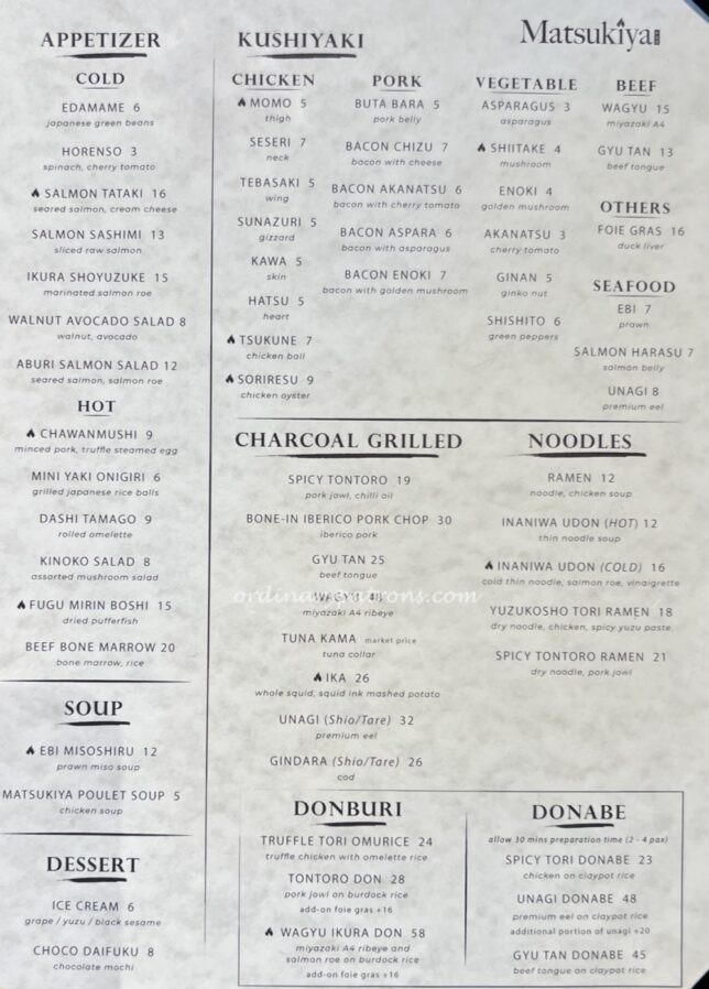 Matsukiya is a restaurant concept by Sushi Tei. It serves kushiyaki grilled over bincho-tan. It has another outlet at Paragon Orchard Singapore. Read about our lunch at the new Matsukiya Holland Village here.