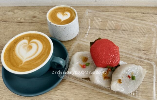 Hidden inside an HDB estate in Bukit Merah is Round Boy Roasters, a modern trendy cafe. A few doors away from them is 146 Famous Bukit Merah Ang Ku Kueh, an old shop selling traditional Teochew kuehs. Strange bedfellows it seems, but together they combine to be an interesting coffee and dessert place near SGH. That was how we ended up with cappuccino and ang ku kueh.