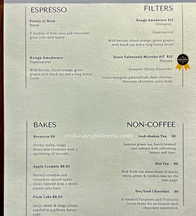 The Round Boy Roasters menu is a simple and short one. Various types of coffee, a few other drinks and snacks. The bakes were sold out by the time of our visit and we were encouraged to get our bites from the neighbour.