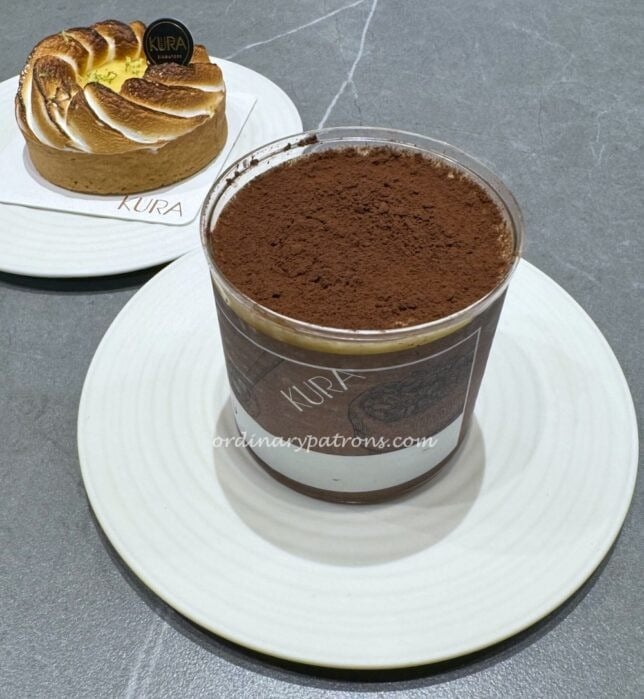 The desserts we tried that day were coffee tiramisu ($8.70) and key lime tart ($8.70). They both had a “Kura” branding. Our guess is that they were from Kura Patisserie. The tart was very well made with a light crust and a mild sourish centre. It looked very attractive as well.