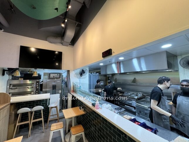 The burger joint at Galaxis is a very small place. Half of the space is taken by the food preparation and service area. The other half is the dining area where around 15 diners can squeeze into the bench or stool seating area. It is best to avoid the peak lunch period of 12 to 1.30 pm on weekdays as it gets crowded.