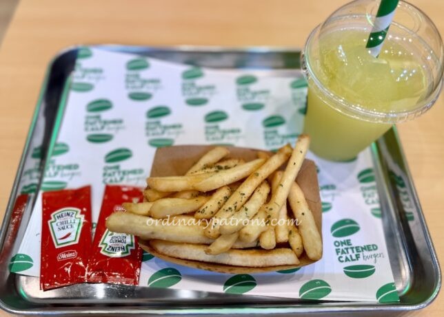 We decided to have the Cheeseburger and GoldBurger that day. One of them was upgraded with an additional payment of $5.50 to get some regular fries and a lemon slushy.