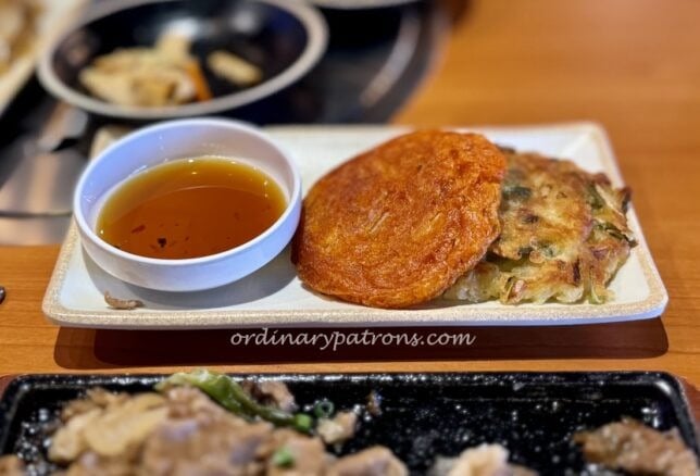 One thing that both dishes had in common were two small pancakes – one kim chee and the other seafood pancake. Both were nice but we preferred the seafood pancake which contained adequate quantities of prawns and squid and the seafood taste was good.