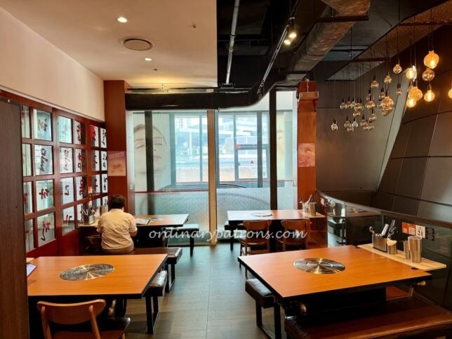 This Korean restaurant has an interesting interior that takes advantage of the quirky design and layout of this building. Big windows, high ceilings, curved walls and generous spaces combine to make this an interesting Korean restaurant in Holland Village. The different seating areas appear to have different personalities. From a modern loft-like atmosphere….