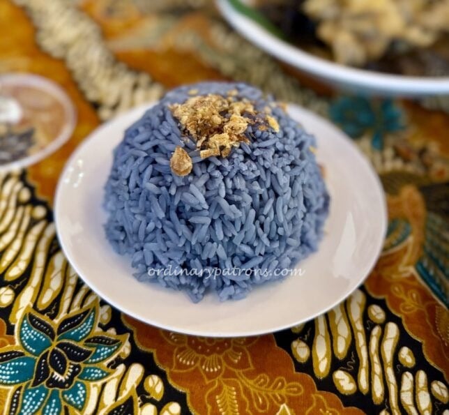 Blue pea coloured rice did not taste much different from the plain white version, but certainly added beauty to the table scape.
