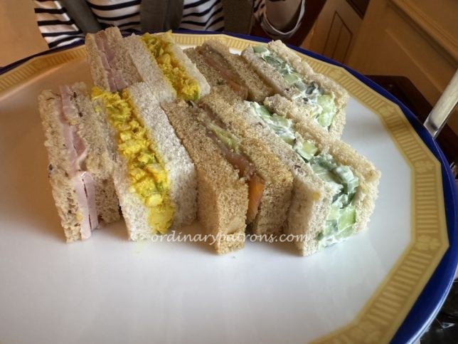 The egg, cucumber, ham and chicken sandwiches should be the next but we mixed up the sandwiches with the scones as too much of the same type in one go gets a bit boring.
