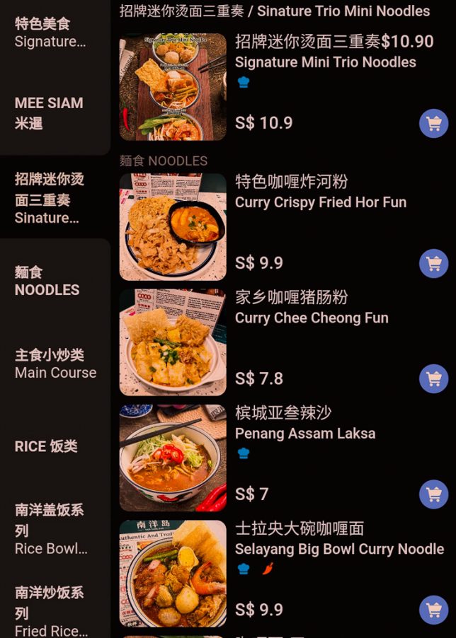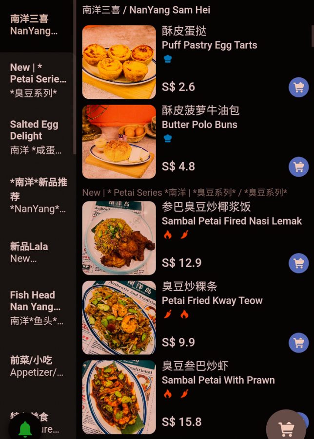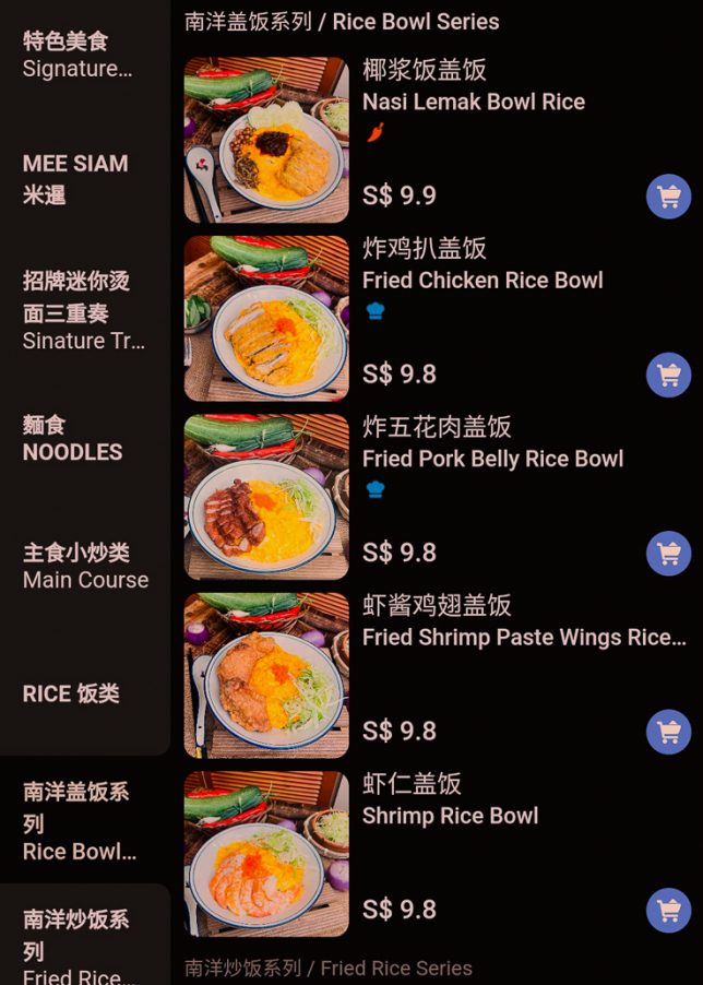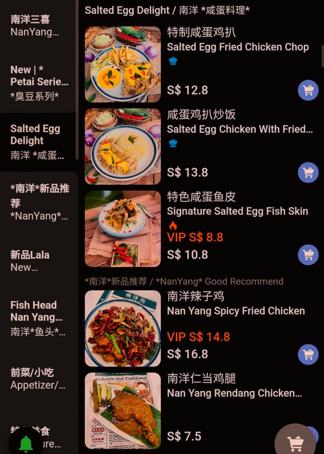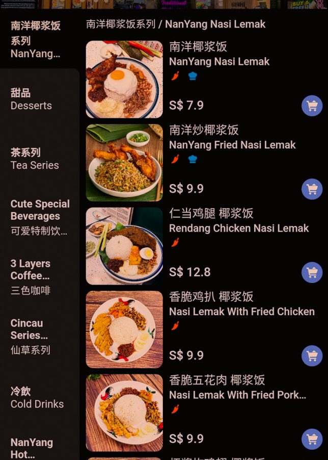 Below are a few screenshots from the digital menu of Nan Yang Dao.