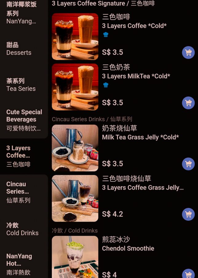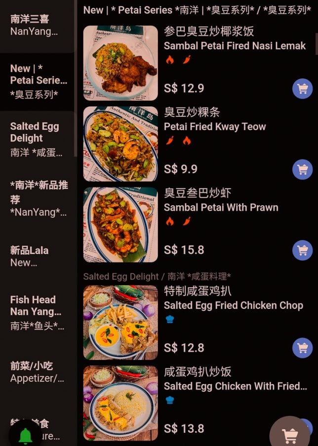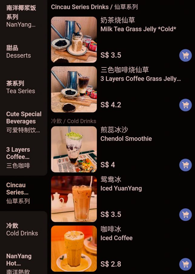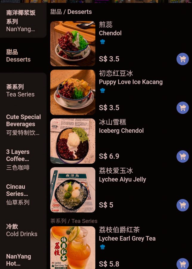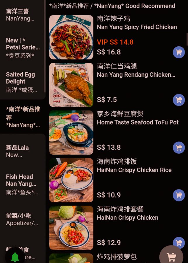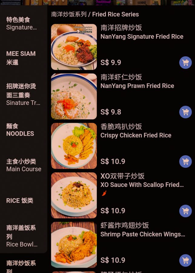Below are a few screenshots from the digital menu of Nan Yang Dao.