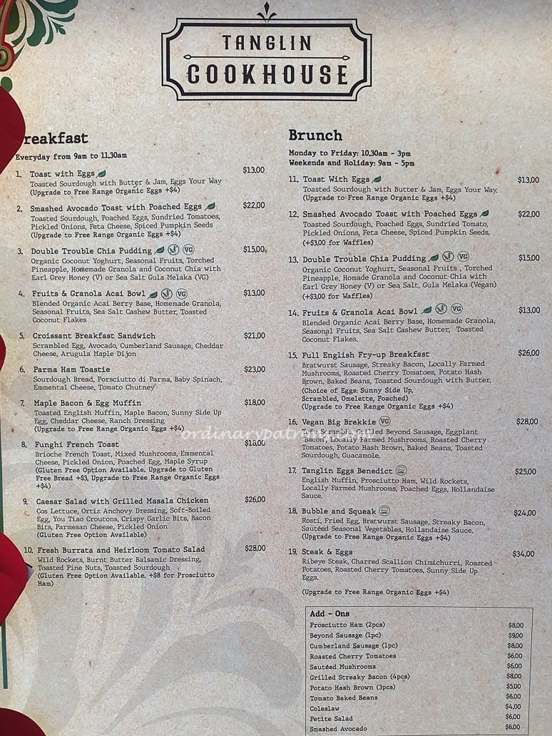 Below are pictures of the menu of Tanglin Cookhouse at PLQ.