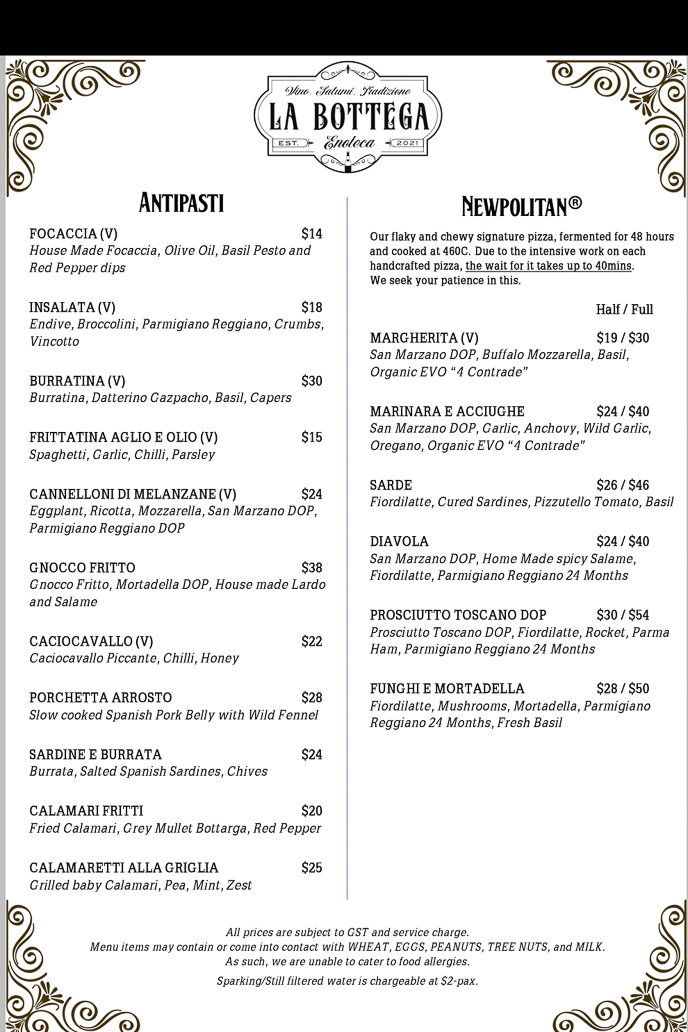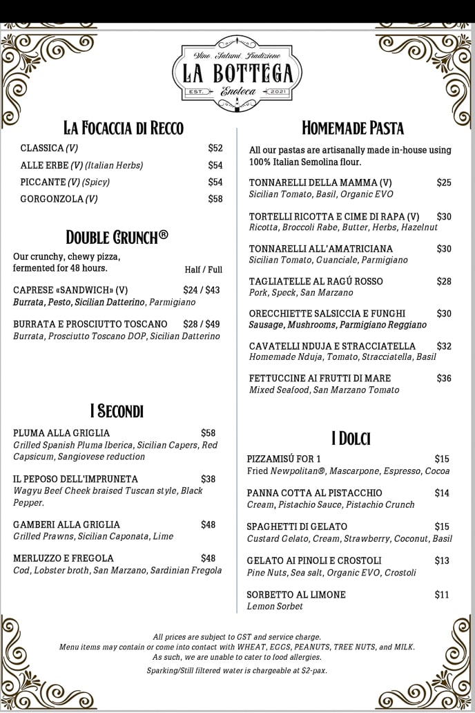 La Bottega Enoteca also offers the usual Italian favourites, from starters and pastas to mains and desserts. Below are pictures of the lunch menu of La Bottega Enoteca.