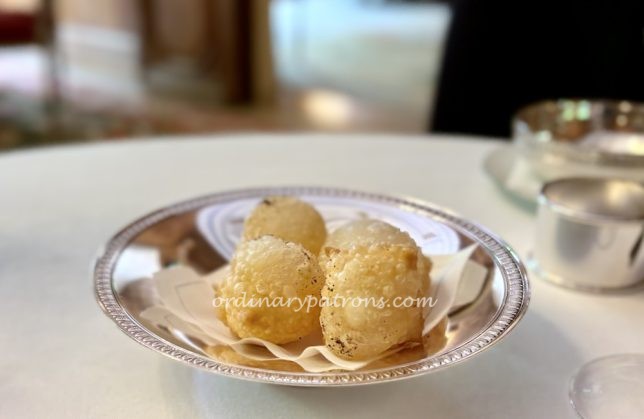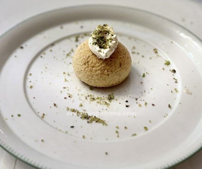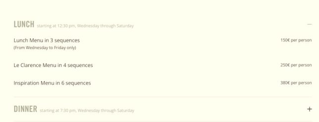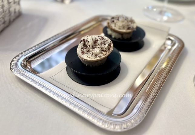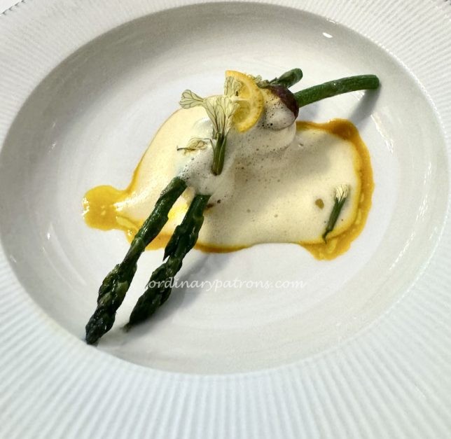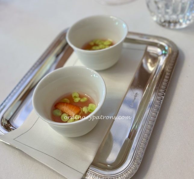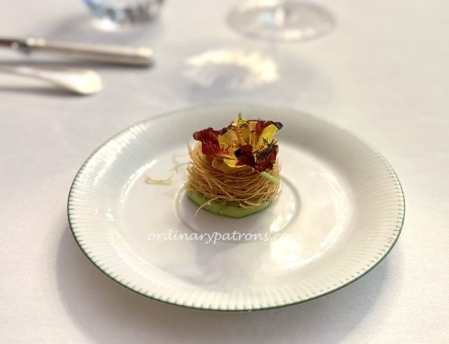 Chef Christophe Pelé had worked in famous French restaurants such as Ledoyen, Lasserre, Pierre Gagnaire, and Le Bristol. At Le Clarence, there is no fixed menu, but rather a variety of dishes based on “exceptional and seasonal products”. For lunch there are three options. We opted for the most affordable one – Lunch Menu in 3 sequences at €150 Euros per person.