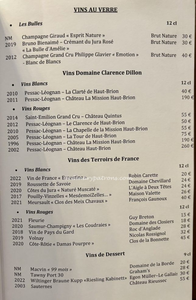 Being a restaurant owned by the proprietor of Château Haut-Brion, the Le Clarence wine list is extensive. Presented in two hardcover volumes, there should be enough choices of French wines for most diners. The only time we had tasted the illustrious Bordeaux was at our lunch at Odette restaurant, which by the way has been moving up The World’s 50 Best Restaurants list. It is currently at #14, Le Clarence is #67.