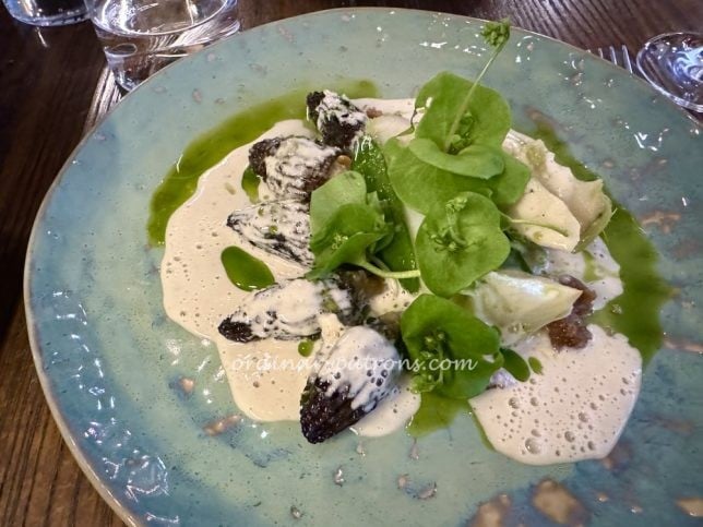 Main courses for lunch were monkfish poached with fresh turmeric romanesco cabbage salad and chick peas (picture above) and fresh morels stuffed with pearl barley, spring vegetables and walnut. Both main courses were enjoyable. Not the run of the mill restaurant dishes, we can see that the chef is very creative to use the available ingredients of the season, I had quick look at the menu presently available at the time of this post and the items are quite different.