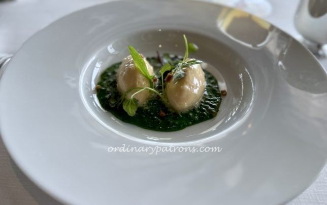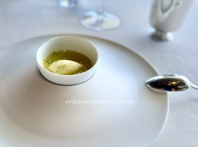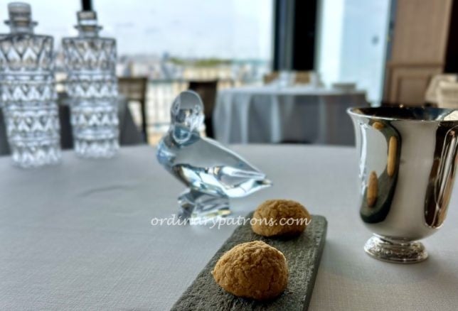 At the time of our visit there were several options for lunch – a four course (150โฌ) Tour d’Argent lunch menu, a Temps & Saisons (360โฌ) five course menu, a Ronomeรฉ (440โฌ) six-course menu (which has very premium ingredients) and the a la carte menu. We picked the most affordable one.